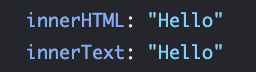 下の方にスクロールしてみると「innerHTML」や「innerText」が出てきて「Hello」と書かれています。