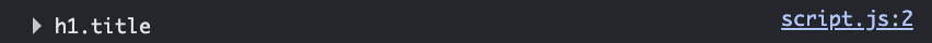クラス名のtitleを使ってh1タグのDOMを取得し、コンソールに表示させるコードです。